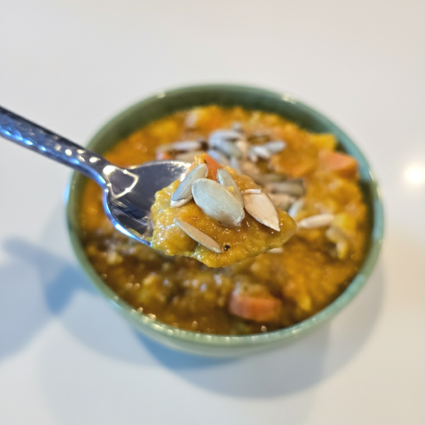 The red lentils make it naturally silky, the pumpkin adds a subtle sweetness, and the curry spices bring everything to life in the most comforting way.